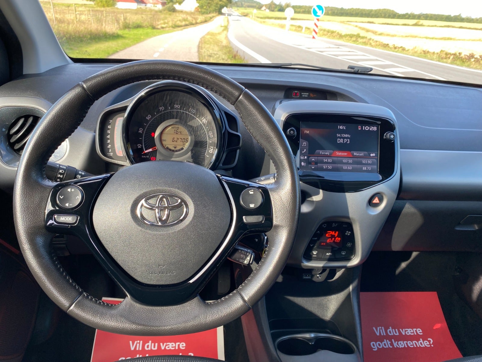 NAVIGATION VIA TELEFON - BAKKAMERA - BILEN KØRER28,9 KM/L - KLIMA - 15" ALUFÆLGE - ISOFIX - BLUETOOTH - VARME I FORSÆDER - HASTIGHEDSBEGRÆNSER - LÆDERRAT - 15" alufælge, fuldaut. klima, sædevarme, tågelygter, navigation via telefon, bakkamera, håndfrit til mobil, musikstreaming via bluetooth, android auto, apple carplay, usb-a tilslutning, aux tilslutning, kørecomputer, bagagerumsdækken, multifunktionsrat, læderrat, stofindtræk, højdejust. førersæde, splitbagsæde, el-sidespejle, led kørelys, mørktonede ruder i bag, centrallås, fjernb. centrallås, udv. temp. måler, el-ruder, automatisk start/stop, dæktryksmåler, højde just. rat, el just. forlygter, indfarvede kofangere, airbag, esp, stemmebetjening...... MEGET VELHOLDT AYGO MED SERVICE OVERHOLDT!!!!!!! MULIGHED FOR FINANSIERING MED OG UDEN UDBETALING !!! EKS: UDBETALING KR. 5000, - MD. YDELSE KR. 1595, - MED FRI KM !! SÅ HVORFOR LEASE NÅR DU KAN EJE !!! KONTAKT SALGSAFDELINGEN DIREKTE PÅ 92155455, ÅBENT MANDAG - FREDAG KL. 8.00-17.00, LØRDAG KL. 11.00-14.00 , SE VORES STORE UDVALG PÅ BNAUTO.DKUdstyrsliste
